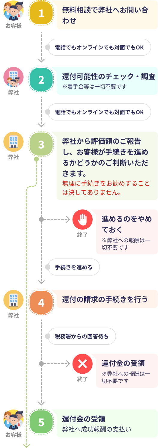 還付手続きを行うかどうかを決めるのは納税者の自由ですので、実際に手続きを進めるかどうかのご判断はお客様ご自身で決められます。