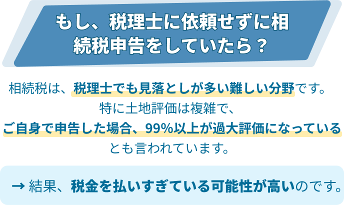 当社では、相続専門の税理士が適切な評価を行い、還付を受ける可能性が高まります。