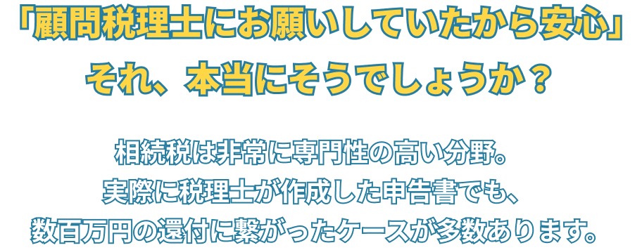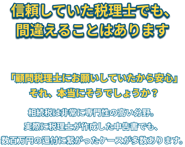当社では、相続専門の税理士が適切な評価を行い、還付を受ける可能性が高まります。