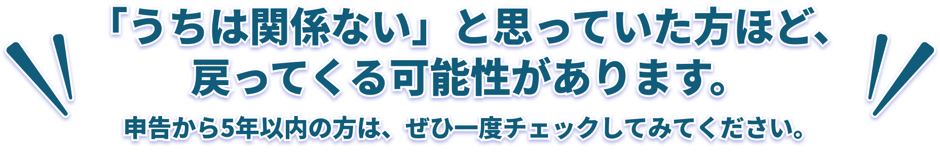 還付手続きを行うかどうかを決めるのは納税者の自由ですので、実際に手続きを進めるかどうかのご判断はお客様ご自身で決められます。