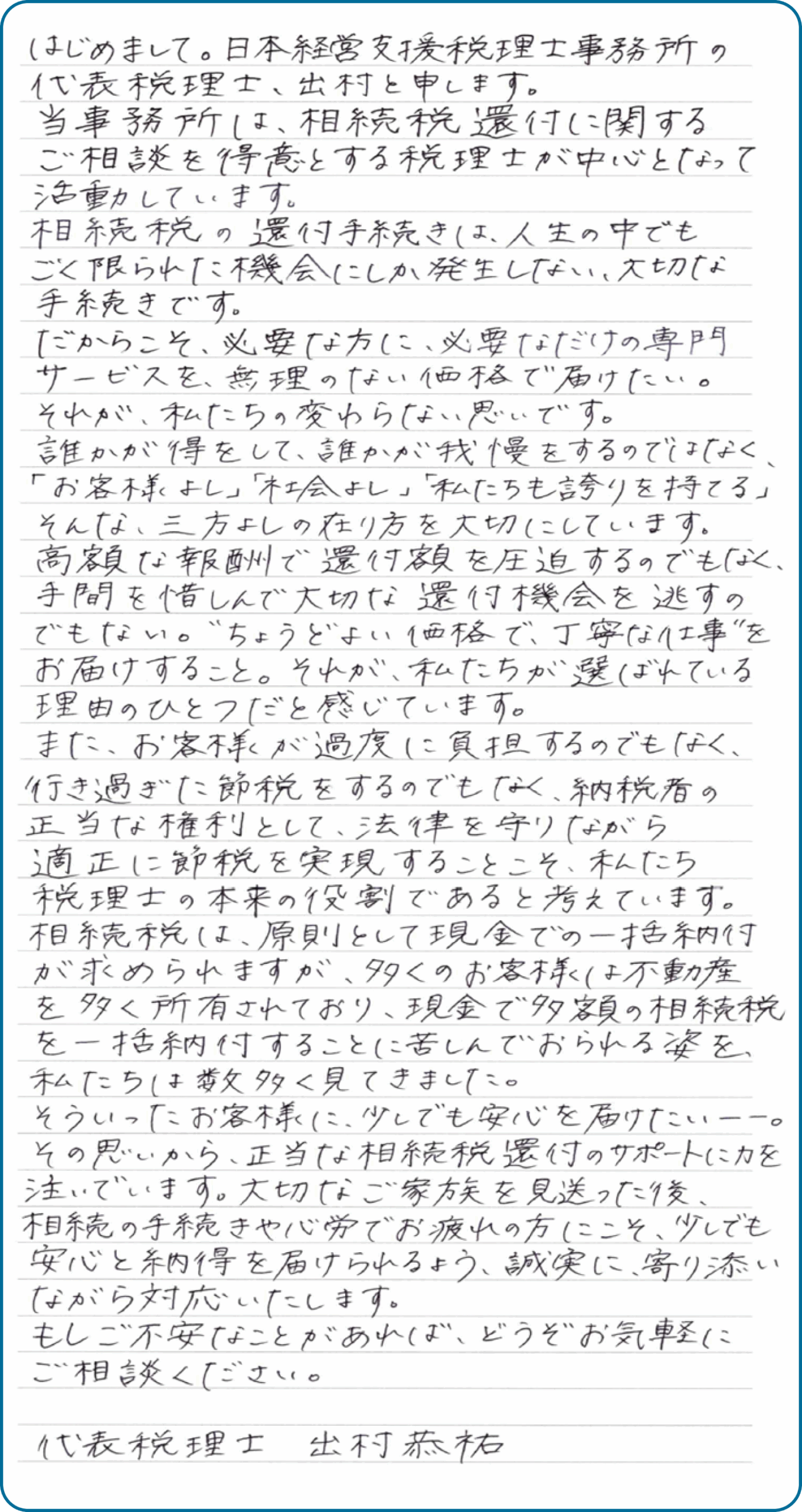 根拠ある正確な申告書と、最適な節税のご提案に自信があります。